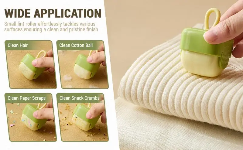 Versatile Usage: From clothing to furniture, carpets to car seats, this small lint roller effortlessly tackles various surfaces. Whether it's removing pet hair, dust, snacks, or yarn scraps, it's suitable for a wide range of applications, ensuring a clean and pristine finish.